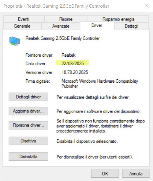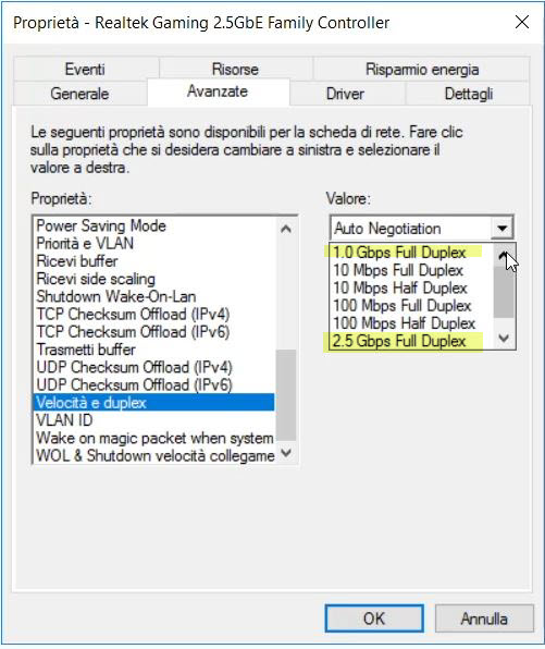 Potrai usare in realtà anche uno di quei due slot corti X1 (slot 1 e 4 nel diagramma). Come bus, il PCIe 2.0 è sufficiente per saturare la 2.5 Gbps su slot in formato X1. Per prestazioni di rete su USB 3.0 a 2.5 Gbps non dovresti avere problemi anche con quella soluzione. Ma ogni adattatore va sempre testato poi nella propria configurazione e per le proprie esigenze. Dopotutto su porta USB 3.2 esistono addirittura adattatori che arrivano a 10Gbps su RJ45. Non credo che tu ponga questi dubbi perchè hai problemi di latenza con giochi competitivi. Con chipset Realtek ti consiglio di scaricare sempre i driver aggiornati dal loro sito e non lasciare semplicemente la rilevazione automatica di Windows. Attualmente questo è il risultato su NIC Realtek RTL8125B (2.5Gbps): ![]() Inoltre fai attenzione che potresti volere forzare la negoziazione a seconda della tua rete invece che lasciare Auto Negotiation:
