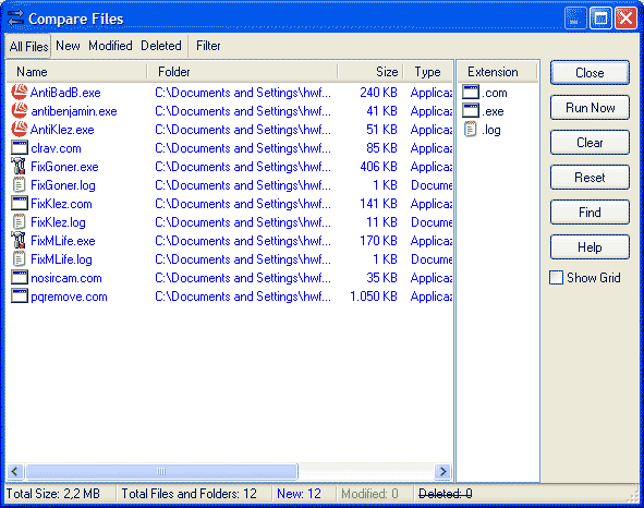 L'operazione di sincronizzazione permette di rendere il volume di destinazione identico (per quanto riguarda i files contenuti) al volume di origine; la comparazione invece fornisce un elenco dei files in cui sono evidenziati i files mancanti nella cartella di destinazione. Cliccando su Run Now si effettua la sincronizzazione. Per migliorare la leggibilità di questo elenco, è possibile filtrare i files visualizzati, decidendo ad esempio di visualizzare solo i files nuovi o quelli modificati.