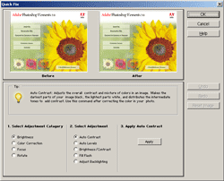 Il pannello QuickFix, visualizzando contemporaneamente l'immagine originale e la preview, permette un controllo immediato delle modifiche apportate.