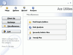 ACE Utils è una piccola raccolta di strumenti utili ed interessanti, che permettono di mantenere in efficienza il proprio sistema e di eliminare files inutili. Cosigliato ai meno esperti, ma con attenzione