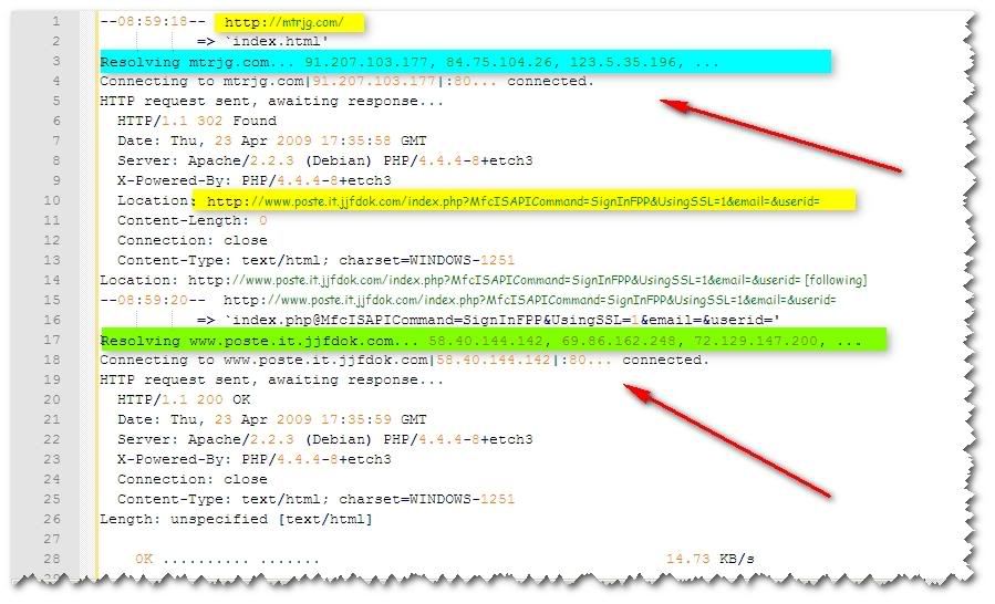 Questa la mail ricevuta che appare simile ad altre gia ricevute in passato ![]() ma che analizzando il link proposto al sito di phishing dimostra una diversa attivita' rispetto alle consuete mails di phishing Questo il log della connessione al sito di phishing ![]() che ci mostra un primo redirect che appare gia utilizzare la tipica tecnica fastflux che siamo abituati a vedere utilizzata dalle botnet. Questo un report eseguito con script Autoit che mostra i diversi IP a cui si viene collegati ![]() e questo un dettaglio degli ip coinvolti ![]() Una volta rediretti sul sito di phishing possiamo vedere che anche questo presenta stesse caratteristiche di tecnica fast-flux Ecco un Nslookup ![]() con in evidenza il TTL di 3 minuti tipico di uso fastflux e questo il report Autoit degli IP coinvolti ![]() con un dettaglio della provenienza (report sul blog) Come si vede un sito che utilizza tecniche piu' evolute ( probabile uso di computers compromessi apparteneti a Botnet) rispetto ai normali siti di phishing che si limitano al massimo ad un redirect per nascondere la loro reale provenienza. Edgar ![]() fonte: http://edetools.blogspot.com/2009/04...fast-flux.html |