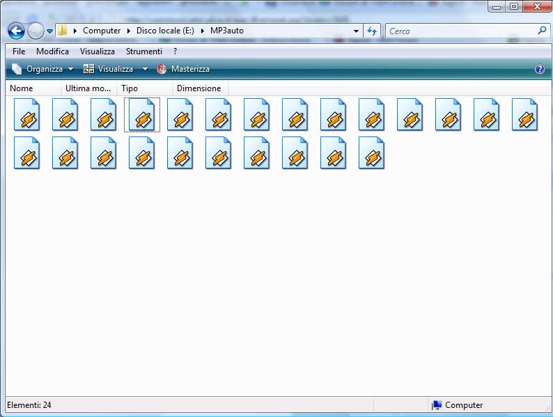 Ci ho copiato dentro dei file. Il risultato lo vedi tu stesso. Sono spariti i nomi dei file. Se modifico in un qualunque modo il nome della cartella (es. MP33auto) i nomi ricompaiono. |