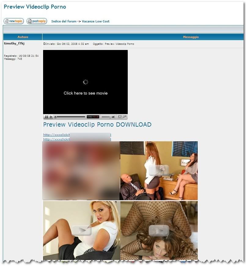 Anche se dal primo ottobre dovrebbe essere stata completato il blocco su tutto il territorio italiano del numeri a pagamento (144, 166, 482, 483, 484 e 899, 163 e 164, 892 , 412, 41412, 444, 448 ecc...) sono presenti, su alcuni forum italiani, utilizzati da chi invia post di spam per linkare pagine con malware , una serie di messaggi aggiornati, con link a pagine in italiano con dialers. ![]() Ed ecco come appare uno dei post presenti ![]() Come vediamo Il layout dei messaggi ricorda molto da vicino quelli ben noti con links a pagine con falso player video e malware (stesso falso player ed identiche immagini) (img sul blog) hostate su server USA di cui vediamo un reverse IP ![]() che propongono o il download di file eseguibile ![]() chiaramente dialer oppure informano delle modalita' di attivazione del 'servizio' di download di immagini e filmati porno tramite attivazione da telefono fisso o da cellulare, ![]() il che potrebbe spiegare il perche' della presenza di questi links aggiornati Infatti, poiche' da quanto si legge in rete, la disattivazione dei numeri a a pagamento non riguarda la telefonia mobile ( es come descritto in questo articolo su P.I. http://punto-informatico.it/2423814/...cellulari.aspx ) rimane sempre la possibilita' di chiamare il numero segnalato nella pagina senza nessuna attivazione supplementare del servizio. ![]() In ogni caso, c'e' da dire che, rispetto al passato, i siti segnalati nei links forniscono una seppur minima info al riguardo del costo della chiamata al numero a pagamento ![]() Rimane comunque il fatto che la non disabilitazione dei numeri a pagamento relativamente alla telefonia mobile possa generare il rischio di possibili abusi da parte di questi servizi a pagamento (http://www.aduc.it/dyn/macromicro/ar....php?id=234826) Edgar fonte: http://edetools.blogspot.com/ |
