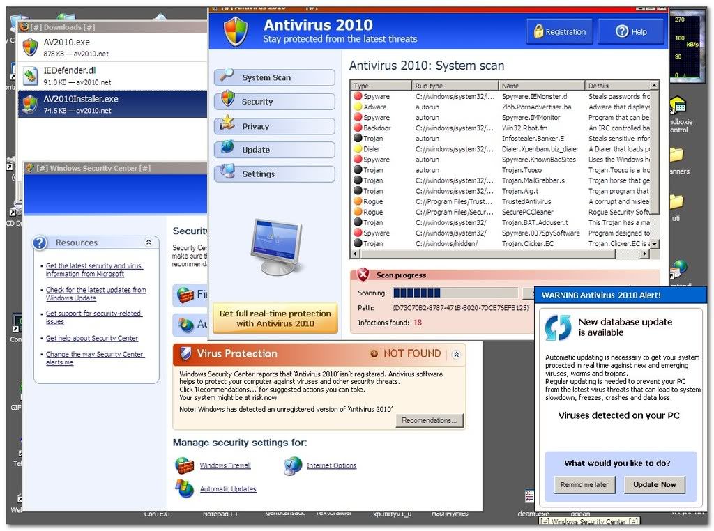 Anche se non e' terminato il 2008, chi crea false applicazione antivirus ha gia pensato al 2010. Ecco infatti in rete la comparsa del nuovo Antivirus 2010. Si tratta d una applicazione di falso antivirus recente e che e' continua la lunga sequenza di altre false applicazioni Av quali Antivirus 2008 ... 2009 ..ecc Questo il sito dal quale ci viene proposto di scaricare il falso AV2010. ![]() con whois in ![]() In realta' viene scaricato un installer che provvedera' a lanciare il programma Antivirus 2010 dopo aver scaricato sia il file eseguibile che una dll sul nostro pc. Interessante notare che i maggiori software AV basano la loro azione contro questa falsa applicazione proprio evidenziando l'installer come pericoloso (report sul blog) e non invece il file eseguibile dell'applicazione scaricato dal programma di installazione (report sul blog) Questa cosa se da un lato garantisce il blocco di un possibile download con esecuzione del programma dall'altro si potrebbe prestare a contromisure da parte di chi ha creato e gestisce questo tipo di distribuzione di rogue application. Basterebbe infatti la sola modifica del codice dell'installer per eludere ogni controllo sul falso antivirus. Come si vede da un report Anubis l'installer esegue alcune azioni tra cui (report sul blog) mentre il download eseguito dal software di setup comprende, come gia' detto sia un eseguibile che una dll. (report sul blog) Per quanto riguarda la dll solo Symantec evidenzia il problema (report sul blog) Una volta in esecuzione il file di install del falso Av, dopo una finestra di avviso, (img sul blog) carica ed esegue il programma che riempie lo schermo del pc di finestre di allerta malware e di scansione in corso, con in elenco una lunga lista fasulla di malware trovato sul nostro hard disk ![]() Come vediamo da questa videata abbiamo anche la presenza di un fake Security Center che cerca di rappresentare nel modo piu vicino al reale la finestra del Security Center di XP, ma le differenze ci sono anche se subito non evidenti Ecco messe a confronto le finestre quella del reale Security Center a sinistra e del fasullo a destra ![]() dove notiamo ad esempio che e' stata usata una diversa icona per le opzioni Internet ed anche un avviso Microsoft presente solo sull'orignale Security Center. Una volta installato il falso software genera frequenti messaggi di allerta sia con la comparsa di avvisi sulla barra di XP che anche con l'apertura di finestre di avviso sul desktop (img sul blog) Inoltre, e questa e' una novita' si segnala da piu' parti, la comparsa ad intervalli di tempo, variabile, di un falso schermo blu, il cosiddetto “Blue screen of Death” (img sul blog) tipico di problemi al sistema operativo Windows e che vuole simulare appunto un crash del sistema per meglio invogliare alla registrazione del software. Al momento non posso confermare la presenza di questa nuova capacita' del falso Av in quanto non ne ho rilevato la comparsa anche dopo piu' di un ora di esecuzione del AV2010.(possibile differente risposta del programma quando eseguito in macchina virtuale) Inoltre facendo riavviare il computer si nota che nel folder di windows c:\WINDOWS\system32 e' presente il file wingamma.exe che ad ogni boot del pc lancia il falso AV e, come vediamo, ![]() attiva anche una connessione con il sito che ospita pagine ed eseguibile di AV2010. La richiesta di registrazione compare ogni volta che si clicca su qualche opzione di rimozione del malware indicato (img sul blog) ed apre questa una pagina (img sul blog) dove a pagamento si potra' registrare il software Per quanto si riferisce alla disinstallazione del software come al solito bisognera' affidarsi agli articoli pubblicati in rete che descrivono in dettaglio le modalita' di rimozione, quasi sempre manuale, del software in quanto l'opzione uninstall nel menu relativo al programma e', come sempre, in questi casi di falsi antivirus, inattiva. Edgar fonte: http://edetools.blogspot.com/ Ultima modifica di Edgar Bangkok : 10-10-2008 alle 09:58. |