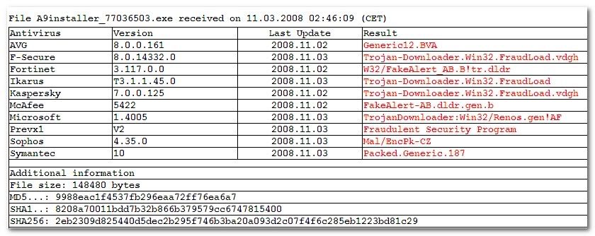 ![]() sia come risposta da parte dei vari softwares AV presenti nel report VT ![]() Come sempre le continue modifiche del file eseguibile di install garantiscono che lo stesso sia poco riconosciuto come file pericoloso. Inoltre il sito del falso scanner online ora propone come url ![]() In ogni caso il link presente sui siti moodle che reindirizza sul sito del falso scanner rimane sempre lo stesso e punta a sito hostato al momento in Germania e con un nome di registrar che non stupisce affatto per questo genere di siti. ![]() Edgar |