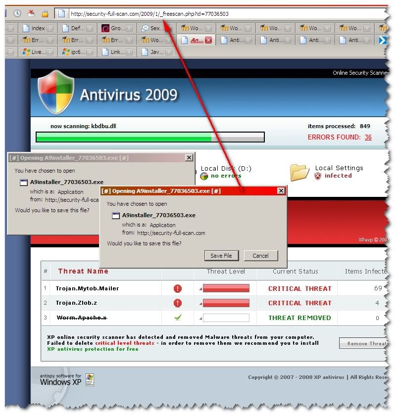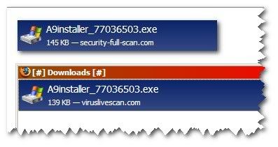 Pur rimanendo con il medesimo nome, il file che installa il falso AV e' cambiato sia di dimensione, come si vede anche da due download successivi (ieri e oggi in basso)