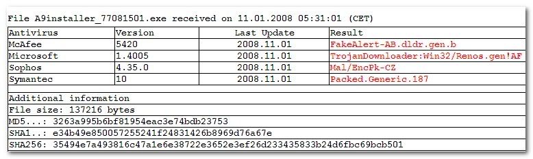 Si tratta in realta' della medesima applicazione antivirus fasulla che si sta diffondendo in queste ore grazie a links che appaiono su molte pagine di siti compromessi o comunque su pagine che sono utilizzate. loro malgrado, per distribuire links pericolosi. Un primo caso lo possiamo trovare in una delle tante pagine Moodle che sono aggiornate quotidianamente come vediamo in questi dettagli. (alcune info in piu' sulla compromissione di siti Moodle le trovate su questo recente post) Questo uno dei siti di E-Leasing coinvolti (img sul blog) che viene sfruttato al suo interno per proporre vari links (img sul blog) Come si vede i links sono aggiornati alla data odierna Le pagine con links sono piu' di una ed aggiunte quotidianamente al sito Moodle. Il link porta tramite successivi redirects a ![]() Un altro caso e' questo link presente in una pagina di Google Groups (img sul blog) che linka a (img sul blog) Questo un whois di uno dei siti che distribuisce il falso antivirus (img sul blog) Il range IP relativo ai siti che distribuiscono questa applicazione fasulla comprende numerosi altri siti dubbi tra cui anche pagine che distribuiscono i soliti falsi filmati e codecs video fasulli contenenti varianti di malware Zlob. Il file esegubile scaricato viene poco riconosciuto dagli antivirus presenti in VT ![]() mentre una volta in esecuzione si comporta come il 'vecchio' Antivirus 2009 Protection esaminato qui , di cui probabilmente utilizza gli stessi codici, come si puo' vedere confrontando le videate del software odierno in esecuzione ![]() (img sul blog) Come sempre la rimozione del fake antivirus e' difficoltosa e richiede spesso interventi manuali sia cancellando files che chiavi aggiunte sul file registro. Il consiglio rimane sempre quello di evitare di installare software di cui non si conosce la provenienza, tanto piu; se proposto automaticamente da qualche pagina web ed inoltre dare una occhiata in rete tramite un motore di ricerca per acquisire qualche info in piu' prima di installare un programma la cui rimozione potrebbe poi comportare notevoli problemi. Edgar fonte: http://edetools.blogspot.com/ Ultima modifica di Edgar Bangkok : 01-11-2008 alle 12:58. |