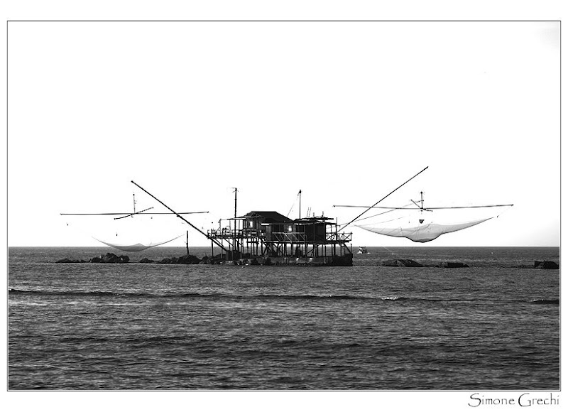 Il recupero dei colori lo trovo ben riuscito: soprattutto nella prima sembra quasi che ci sia una luce dorata da tardo pomeriggio, pre-tramonto. Ma la composizione non mi convince affatto. La prima la vedo piatta e centrale, senza alcun elemento in evidenza. La seconda almeno è asimmetrica e c'è una barca che sembra catturata nella rete, simpatica. Però anche qui il taglio sembra approssimativo: le funi che convergono in alto a destra suggeriscono che lì ci sia qualcosa appena oltre il bordo del fotogramma, e ne deriva un gran senso di incompiutezza.