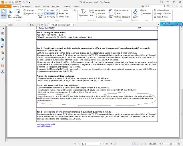 non è poco, ma sempre meno degli 80 e passa di Telecom non ho fibra nel mio rione, non posso recedere un offerta in corso per accedere a un altra dello stesso operatore. Per favore un po' di concretezza, per favore. Dopo aver letto la clausola in piccolo, penso che anche tiscali vada a farsi benderire