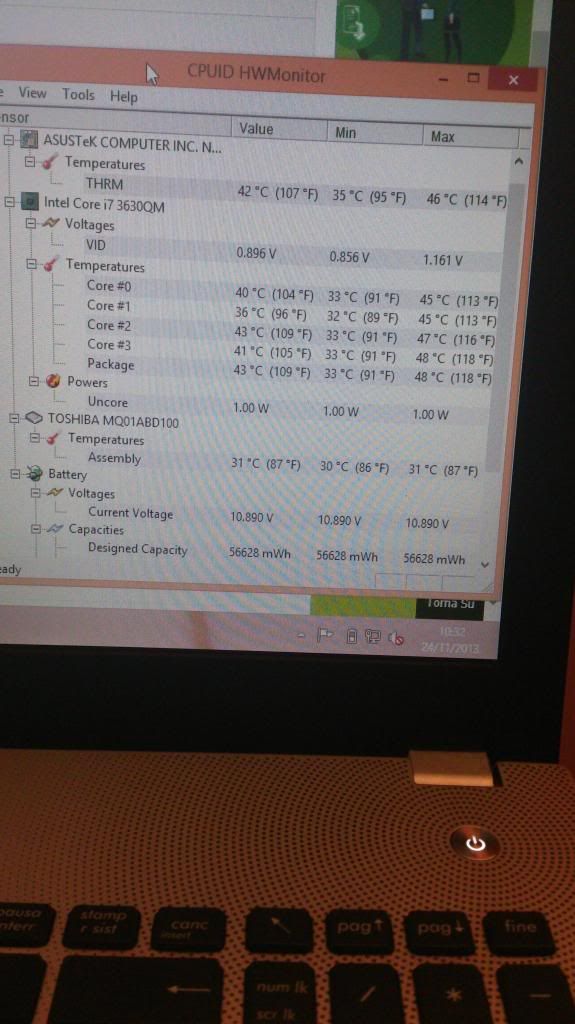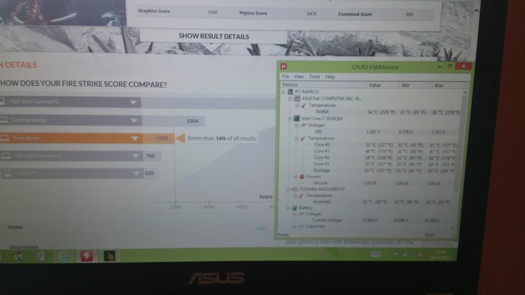 Caratteristiche: Sistema Operativo Sistema Operativo Windows 8 Hardware Dimensione schermo 15.6 Pollici // 1366x768 Pixel // HD Ready; LED Processore Intel Core i7-3630QM (2.4 GHz) Chipset Intel HM76 Memoria 8 GB DDR3 1600 MHz Scheda Video NVIDIA GeForce GT 750M Memoria video 2048 MB DDR3 Hard disk 1 TB SATA 5400 rpm Unità ottica S-Multi DL Lan Gigabit Lan Audio Integrato; Ingresso Microphone; Uscita Cuffie Card reader SD/MMC/MS Wireless WiFi 802.11n (b/g) Bluetooth Bluetooth 4.0 Webcam HD Batteria 6 celle PREMESSA Il computer mi è arrivato con Windows 8 L'ho subito aggiornato a Windows 8.1, aggiornando tutti i driver, compreso l'ultimo appena uscito per le schede nvidia. Personalmente mi trovo molto meglio con Windows 8.1 che con Windows 8. MINI-RECENSIONE: Il computer esteticamente rende molto bene, i materiali sono ottimi, molto resistenti complice la cover del display in alluminio. Se è proprio l'alluminio ha dare quel senso di solidità al notebook è anche vero che trattiene molto le impronte, ma nulla che non si possa pulire. Una base in plastica nera matta circonda il display, con un logo Asus argentato sotto lo schermo, mentre la parte superiore dove si trova la tastiera è ricoperta da un velo di alluminio argentato che rende esteticamente il computer ancora più bello. Ai lati troviamo due tasti, uno di accensione, l'altro un tasto configurabile a nostro piacimento che ci permette un avvio rapido di qualsiasi esecuzione. Ai lati di questi due tasti troviamo dei piccoli forellini rotondi grigi sotto i quali sono presenti le due casse. Queste, insieme al subwoofer in dotazione rende questo pc adatto alle migliori prestazioni multimediali. Il lato inferiore è fatto di plastica nera resistente ai graffi. ![]() ![]() La tastiera presenta il tastierino numerico, e i tasti alla pressione si comportano egregiamente. Come chicca abbiamo la retroilluminazione. ![]() Passiamo allo schermo, per molti è il dubbio principale dato che è solo hd mentre i suoi fratelli n56vv hanno tutti monitor full hd. Allora è un monitor AUO, lcd. Luminosità sufficiente (250 nit) e colori vivi. Ha dalla sua un angolo di visione ottimo di 150°/120° . Ovviamente non è un full hd, ma dato che non lavoro con video o image editing mi va bene così. L'autonomia si attesta poco oltre le due ore con navigazione wifi. Utilizzando l'opzione Power4Gear arriviamo molto risicati fino alle 3 ore, con circa 7-8 giorni di standby. Non è sicuramente un buon risultato, che aggiunto al peso di 2.6kg sono secondo me i grandi svantaggi di questo notebook. L'HDD è di tipo SATA 3 5400 rpm, non è una scheggia, anzi... Per me va benone, ma visto il costo contenuto del pc si può pensare ad aggiungere un ssd. La cpu è un i7, quindi quad core, molto potente. Non noterete differenze nell'uso quotidiano con i5 o i7u, ma appena usate qualche programma pesante, i suoi quad core li fa sentire tutti. Sono presenti alcuni micro-lag fastidiosi nel desktop ma imputabili esclusivamente all'hard disk e a Windows. Purtroppo non ho potuto fare nessun test con intel burn o prime95. Le temperature sono ottime e rimangono basse anche con qualche scheda aperta di troppo. La ventola è silenziosissima. ![]() La gpu è una nvidia 750m con 2 gb dedicati. Non fa miracoli ma grazie al fatto che lo schermo è solo hd, i giochi riescono a girare a dettagli medio-alti (in alcuni si arriva fino ad ultra Nel test di 3dmark11 oltre al risultato di fire strike si può osservare anche la temperatura della cpu sotto sforzo (max) ![]() Spero che la mia mini-recensione vi sia piaciuta Edit: Attenzione, tutte e quattro le porte usb sono 3.0. Ultima modifica di Saurias : 16-12-2013 alle 14:48. |