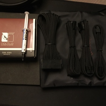 Ordinate da una parte il 2600X e la Taichi liscia X470 e dall'altra tutte le prolunghe sleeved atx per la mobo (24+8+4pin) e due pciex 8pin per la fury. Sono della bitfenix e di un nero semplice semplice per contrastare con gli elementi bianchi camo.