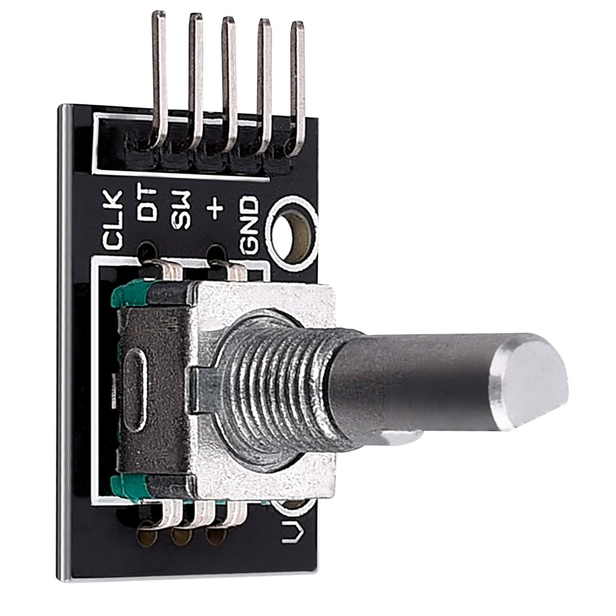 Dalle foto sembrerebbe un normale encoder rotativo EC11 , quindi uguale a quello della foto , che puoi acquistare un po dappertutto su internet . In realta gli encoder non sono tutti uguali , ma quelli cinesi della foto sono standard , quindi tutti uguali tra loro . i pin clk , dt , sw , sono scritti cosi per facilitare il collegamento sulle schede arduino e simili ( il circuito della foto va infatti collegato a una scheda arduino per funzionare ) , mentre i pin su un normale encoder sono indicati in modi diverso comunque se cerchi su google trovi tutti gli schemi di collegamento con tanto di indicazioni dei pin dell' encoder . Se a te serve solo l' encoder lo puoi smontare dal circuito che si vede nella foto e sostituirlo a quello del tuo circuito . Ultima modifica di alecomputer : 06-08-2018 alle 10:05. |