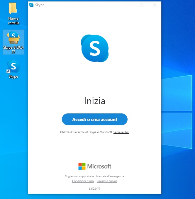 Ciao. Ho Windows 10 64 Home, ho scaricato Skype e quando lo apro vedo tutto bianco. Perché?