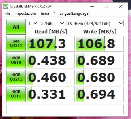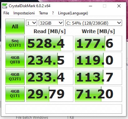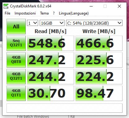 Il mio dubbio è questo: ogni volta che cerco recensioni o opinioni su periferiche di memorizzazione trovo dei bench fatti con CrystalDisk Mark settato sulle opzioni 5x 1gb, che restituisce valori piuttosto alti, mentre io lo uso sempre 1x 16gb però ho notato che già scegliendo le opzioni 1x 32gb, soprattutto in scrittura, le cose cambiano decisamente in peggio. Quindi, come va utilizzato questo software? Ho fatto dei test sul mio ssd e potete vedere qui sotto i risultati: