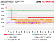 Anche i dischi nvme dalla fascia bassa alla fascia medio alta soffrono del medesimo problema. Per tua curiosità, cerca i test di scrittura del disco da vuoto a pieno. I buonissimi sabrent Rocket (TLC) resistono qualche decina di gb, gli ottimi 970 evo plus (TLC) reggono fino a quasi 100gb (una rarità) e il costosissimo 970 pro (mlc) ha solo un leggero calo di velocità ma riesce ad arrivare a fine corsa quasi come all'inizio. Parlo di cali di velocità in sequenziale da 3500 a 600-700! Tutti i dischi non hanno problemi di cache con 1gb per Crystal disk Mark, ma 32gb su un disco da 240gb, se TLC, fa esaurire la cache. Ecco il perché del tuo calo. |