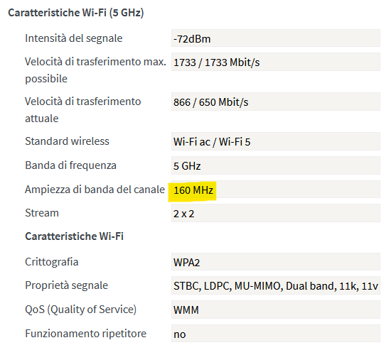 netsh wlan show interfaces ![]() Questa scheda a stento mi tocca 1,2 Gbps, ma sono attimi, nonostante sia a cinque metri dal router e senza ostacoli.