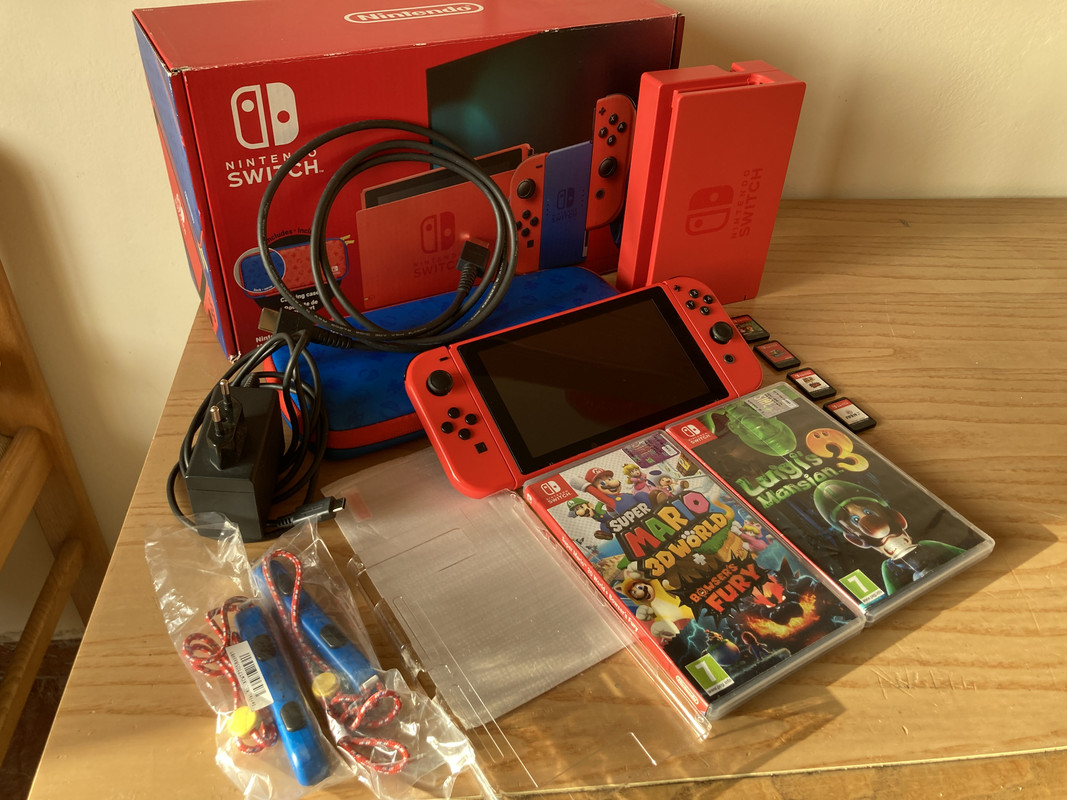 Vendo nintendo switch limited super mario vendo perchè mio figlio era tutto il giorno su a giocarci, completa di tutti gli accessori originali + 4 giochi + pellicola in vetro temperato applicata dal primo giorno + un'altra pellicola di riserva + una cover trasparente. scontrino presente, acquistata da expert a marzo 2021.