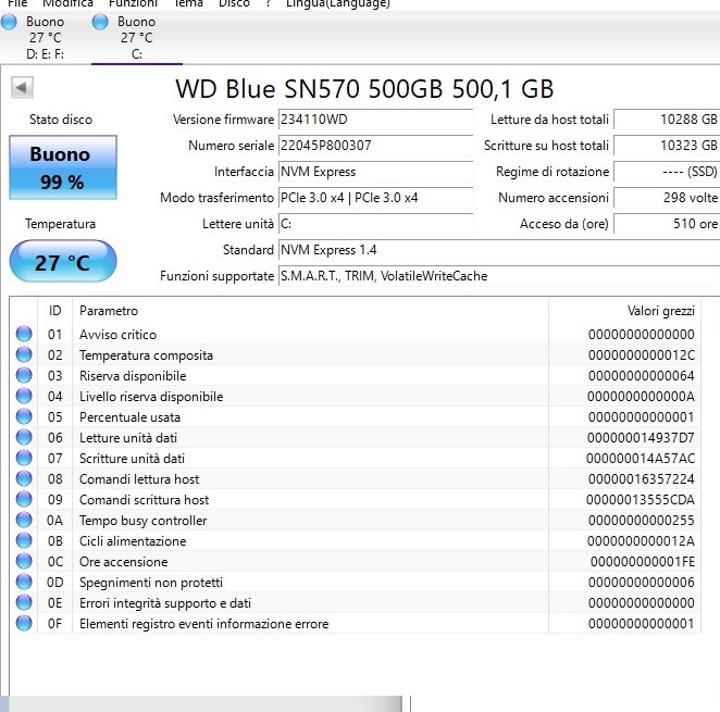 https://crystalmark.info/en/software/crystaldiskinfo/ Considerato che WD indica un Endurance di 300 TB https://www.tomshardware.com/reviews...e-sn570-review È relativamente facile fare due calcoli per vedere se la situazione corrisponde. |