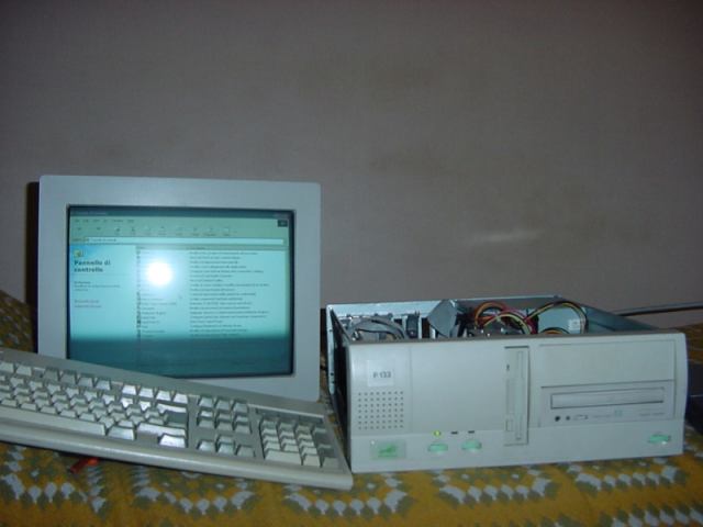 il pc è un p133 ram mi pare 32mb hd da 1.2g lettore cd floppy(questo mi sa ke bisogna invertire il cavo ide dentro) skeda video pci da 16mb e una skeda con 2 usb ke ci ho messo io....+ monitor e tast lo do come da foto a 15euro al primo ke se lo viene a prendere a casa mia (zona nuovo salario) oppure scambio con half life 1 x pc o il 2 + mio conguaglio oppure box hdd esterno naturalmente nn spedisco |