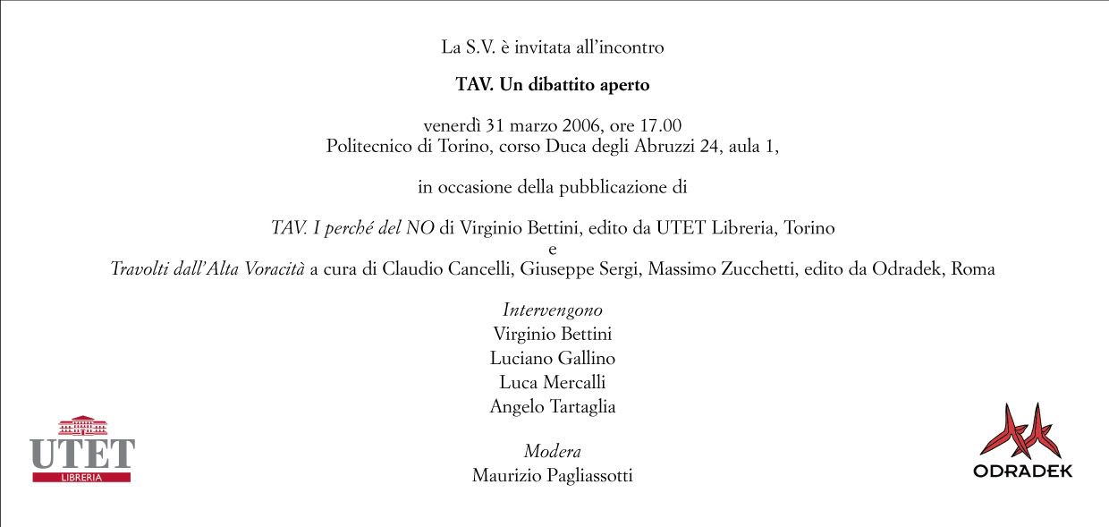 TAV. Un dibattito aperto. Venerdì 31 Marzo, ore 17.00, Politecnico di Torino, aula 1