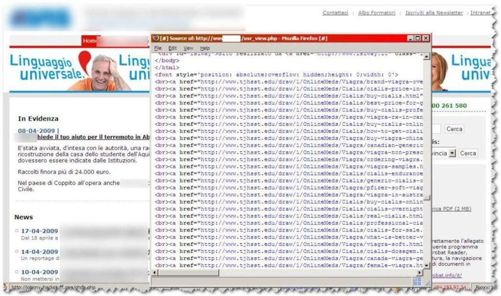 Si tratta del sito di una nota associazione italiana che presenta due differenti problemi Il primo consiste nell'inserimento sia nella homepage che in altre pagine del sito di centinaia di links a siti che pubblicizzano vendita di viagra e derivati Questa esempio la homepage del sito con un dettaglio del source ![]() ed anche (img sul blog) Il secondo problema e' l'inserimento di centinaia di pagine nascoste contenute in questo folder ![]() di recentissima creazione e di cui vediamo un dettaglio ![]() e che al loro interno linkano sia ad altre pagine sempre sul sito compromesso che a siti esterni sul medesimo tema di vendita viagra ![]() Il numero di pagine inserite e' di diverse centinaia ![]() Anche se al momento non compaiono links o scripts pericolosi come sempre questa tecnica, inserendo in un normale sito sia links che pagine nascoste, ottiene lo scopo di far comparire ai primi posti dei risultati di una ricerca in rete, collegamenti a pagine di dubbia affidabilita che distribuiscono viagra e derivati ma in certi casi anche malware o links pericolosi. Inoltre questi inserimenti evidenziano comunque un qualche problema del sito e/o del server che lo ospita che potrebbe sempre essere utilizzato per azioni piu' pericolose quali phishing, distribuzione malware ecc..) e comunque e' probabile che venga generato un traffico non voluto sul sito che potrebbe rallentare il normale utilizzo dello stesso da parti dei normali utenti che lo visitano. E' stata inviato un messaggio tramite il form "contatti" presente sul sito che avvisa del problema in attesa che vengano bonificati links e pagine che nulla hanno a che fare con i contenuti del sito stesso. Edgar fonte: http://edetools.blogspot.com/2009/04...i-links-e.html Ultima modifica di Edgar Bangkok : 18-04-2009 alle 06:51. |