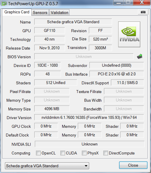 Aggiornato si come dici ma riconosce tutto sbagliato,dimostra 64 shaders cuda quando ne dovrebbe avere 512???poi il valore di clock è sbagliatissimo rispetto alle frequenze standard di una gtx580...valori completamente sbagliati rispetto all'originale!