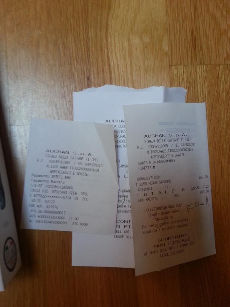 Vendo google Nexus pari al nuovo, acquistato un anno fa circa (non riesco dare la data precisa perchè l'auchan non fa scontrini fiscali con la data), vedrò se riesco a risalire guardando i movimenti bancari.