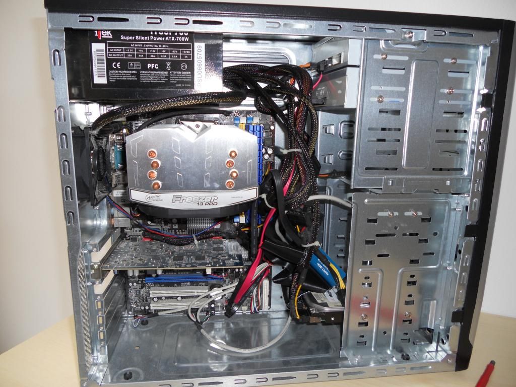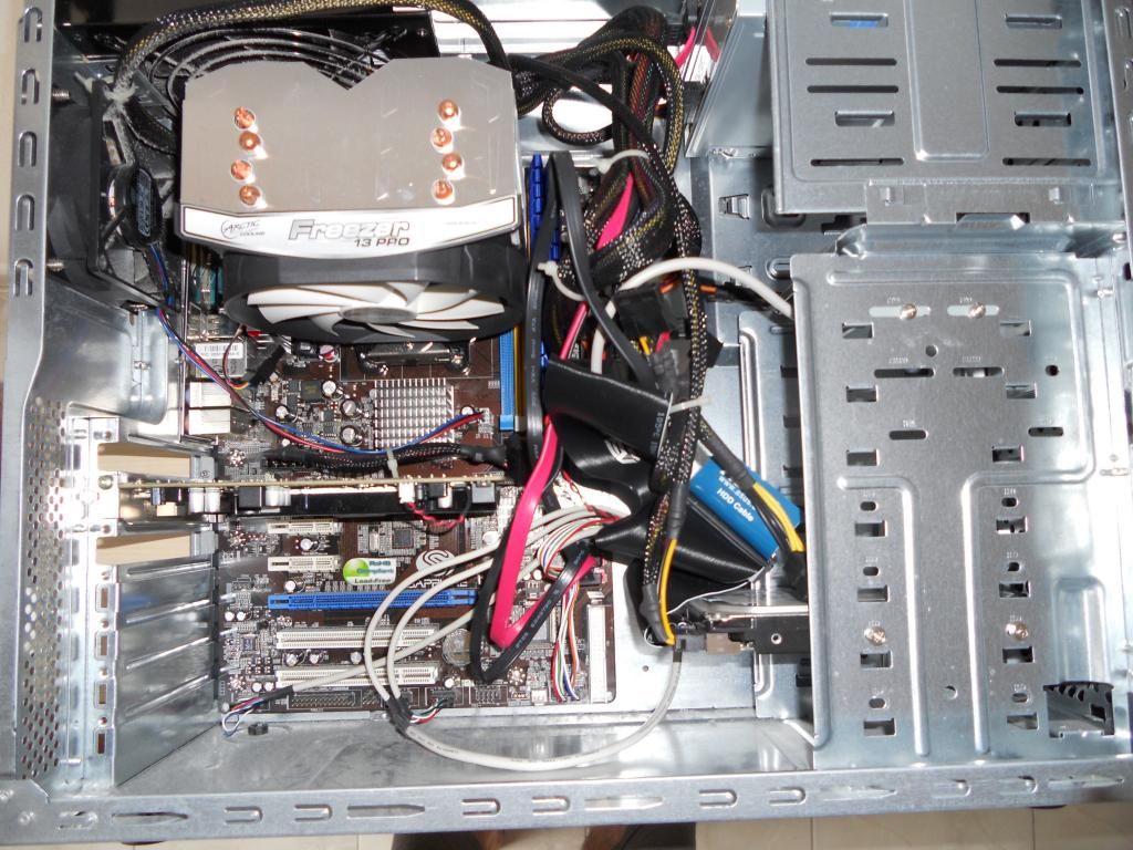 Detto questo, domande : 1# hai altre ventole montate sul case ? 2# come mai il Freezer è montato in verticale e non in orizzontale, che è la posizione più classica ? 3# la ventola posteriore che vediamo in foto, è montata in estrazione (cioè porta l'aria da dentro verso l'esterno del case) o in immissione (cioè porta l'aria da fuori verso l'interno del case) ? 4# l'alimentatore è girato con la ventola verso il basso o verso l'alto ?