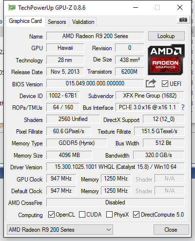 appena presa questa scheda sul forum e... già la devo rivendere, purtroppo la stanzetta dove gioco è diventata regno della neonata e... niente, cercherò altro oggetto più avanti. Ora resterebbe quasi un anno ferma. La scheda è la classica reference design con lo switch (link alla recensione di Guru3D) con chip di memoria Elpida. Purtroppo non sbloccabile, ne ho modificato il firmware della posizione "poweruser", mettendo quello moddato della 390X (290_ELPIDA_MOD_V1.7): prestazioni più alte e temperature in idle più basse con giri della ventola al minimo, più l'aggiunta dello stack UEFI. Senza far nulla, ho guadagnato un 10% di prestazioni e qualche grado sia in idle che in full. Per tornare allo stock basta spostare l'interruttore; ho comunque un salvataggio del firmware originale. Mai smontato il dissipatore originale. Ecco lo shot del BIOS che la mostra come XFX e abilitata all'UEFI: ![]() Ovviamente, funzionante al 100% e senza alcun problema, verrà smontata per l'imballaggio. Quote: