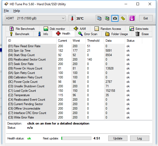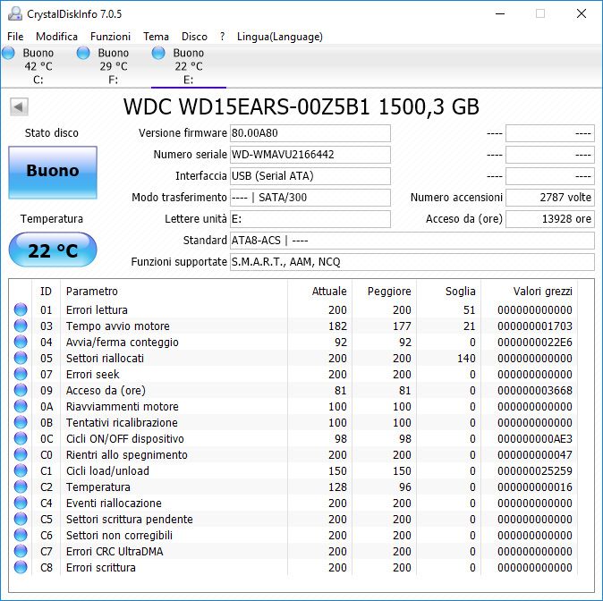 per smaltimento in trasloco vendo questi ardischi, il wd red nasware 3.0 da 1tb 2.5" è in garanzia ancora per un anno e passa presso WD, i due green sono "datati" ma in ottime condizioni, per correttezza indico che hd tune segna un potenziale errore crc (che comunque di solito dipende dal cavo o dalla mobo, non dal disco) su uno nei dati smart, ma con crystal disk non viene segnalato nulla e nemmeno dal software ufficiale WD, quindi facile sia una lettura "sballata" di hd tune (capita..)