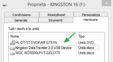 Vorrei cortesemente chiedervi se è possibile (ed in questo caso qual'è la procedura) per cambiare il nome di default di una chiavetta usb.. Con questo non faccio riferimento al nome visibile da Computer - Pendrive..che può essere facilmente cambiato accedendo alle Proprietà - Scheda Generale (vedi immagine 1)...ma a quello assegnato di default dal costruttore a cui si accede sempre da Proprietà..ma utilizzando la scheda Hardware (vedi figura 2). Io ho tentato in vari modi...ma senza successo.. Qualcuno saprebbe darmi qualche suggerimento in proposito..? Grazie a tutti [IMG] closest bp station[/IMG][IMG] [/IMG]