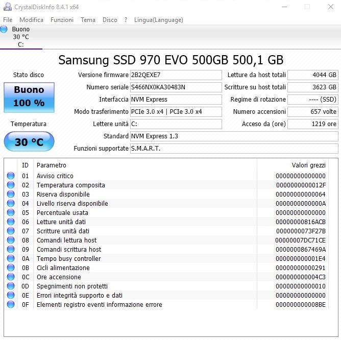 - connessione internet Ho un contratto con Wind fibra ... nella mia via non arriva però, in genere ho una 7 mega (provando con lo speedtest ho 11 di ping, 9,87 do download e 0.83 di upload) - driver installati con problematiche, w10 se lasciato fare ha la brutta abitudine di sovrascrivere i driver per conto suo senza avvisare. In molti in particolarmodo avvisano di problematiche legate alle schede audio (o audio via hdmi gpu) dalla versione 1803 in poi Ho una versione 1803 a cui ho impostato il download quando do il permesso. Di fatto però alla fine installo quelli che mi vengono suggeriti. Esiste la possibilità di escludere alcuni aggiornamenti senza software esterni? - ci sono in background programmi in esecuzione che usano massicciamente le risorse hw (es. ampio consumo ram) impallando il pc Ho controllato. Di processi ne ho, ma vengono tutti classificati come a consumo molto basso bios/agesa della mobo aggiornato? Avevo aggiornato il bios all'installazione del SO, un'anno fa stato di salute degli hdd meccanici? Per interpretare meglio i valori smart di cdi impostalo per visualizzarli in DEC-10, al momento è predefinito in HEX Non saprei come valutare lo stato di salute, ci sono funzioni di windows o programmi indicati? |