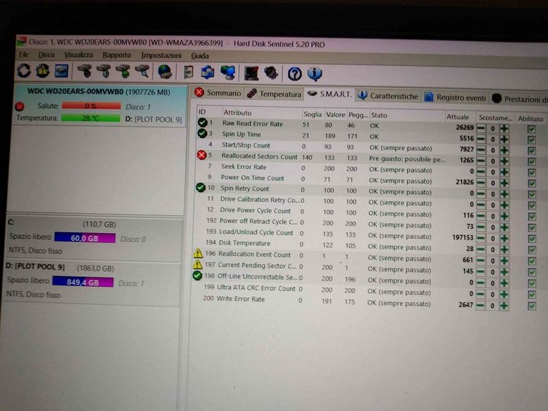 Gli hard disk sono i seguenti: - Western Digital 4TB Purple. Riconosciuto dal BIOS del PC, ma non da Windows. Fisicamente integro. Vedere foto. - Western Digital 2TB Green. Riconosciuto dal BIOS del PC, riconosciuto da Windows, errori come da screen e foto. Fisicamente integro. Vedere foto. Specifico come da regolamento e per evitare ogni possibile contestazione: vendo come "non funzionanti". Propongo ai seguenti prezzi: >>>> Edit SETT 2021: VENDUTI fuori forum <<<< ================= NOTE generali, regole ========================== Stabilisco i prezzi cercando il miglior compromesso per venditore e compratore, nel rispetto del regolamento e basandomi su brevi ricerche e comparazioni effettuate con altre vendite. Per osservazioni sui prezzi, qualora i miei prezzi risultassero non di gradimento o magari ritenete che possano essere fuori regolamento, contattatemi via email od in pm, dato che può succedere di non consultare il forum giornalmente. Per ogni altra necessità scrivete sul thread. Chi mi conosce sa che tratto il mio hardware (e comunque quello che metto in vendita) con rispetto e passione. Per chi non mi conosce, in firma i link alle mie precedenti transazioni. PS: Vi prego cortesemente di postare se realmente interessati ed intenzionati all'acquisto. Tempo e fiducia sono beni primari e vanno utilizzati con intelligenza. Regole di vendita: 0 - Precedenza al buon senso ed alla soddisfazione reciproca delle parti, nella gestione delle code e delle priorità, nei tempi di risposta, nell'evitare la fretta privilegiando le cose ben fatte, etc. Il tutto con contorno di indispensabile gentilezza. 1 - Precedenza ai blocchi (chi prende più componenti). 2 - Precedenza alla consegna a mano. 3 - Precedenza al mio prezzo (chi si mette in coda rispettando la somma da me richiesta). 4 - Pagamento ricarica Postepay o bonifico (preferito) a vostra scelta, accetto anche Paypal (costi a vs. carico). 5 – I miei feedback dicono che offro e pretendo serietà, correttezza, tempestività nelle risposte, per evitare perdite di tempo reciproche, oltre a gradire immensamente la cortesia da ambo le parti. 6 - Vendo e spedisco solo materiale funzionante, salvo ove diversamente indicato. Per ogni eventuale problema che possiate riscontrare sul vostro hardware, cercherò di fornirvi assistenza ed aiuto in ottica di collaborazione e responsabilità ma, per ovvi motivi di intelligenza, sappiate che siamo nell'ambito di "vendita da privato, esente da ogni garanzia, diritto di recesso, cambio o reso secondo le norme europee"; quindi non potrò accettare la restituzione di materiale dichiarato non funzionante dal compratore. Per tale motivo, generalmente faccio e tengo a disposizione un video per la dimostrazione preventiva al compratore del buon funzionamento dell'hardware prima della vendita. 7 – Spedisco sempre con spedizione tracciabile, imballando al meglio il materiale, con costi a carico ed a rischio del compratore (se gradita la spedizione assicurata, non c'è che da richiederla); nell’improbabile caso di problemi con la spedizione, farò di tutto eventualmente per aiutarvi a risolvere ogni possibile problematica, ma la mia responsabilità termina nel momento in cui consegnerò il pacco al corriere / ufficio postale. 8 - In vendita anche altrove
