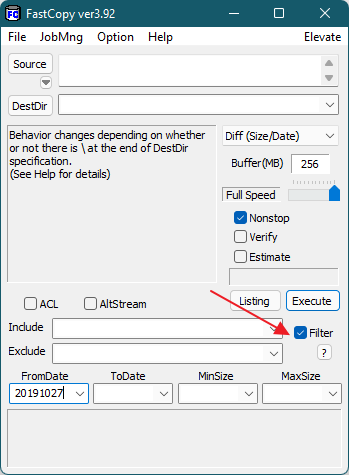 ![]() Dal menu Option scegli Show extended filter, e dopo aver selezionato Filter, puoi immettere la data nel campo FromDate per copiare solo i file da quella data in poi. La data è nel formato aaaammgg. In figura ho messo 27 ottobre 2019. Una volta scelto la cartella sorgente e di destinazione, puoi avviare la copia col tasto Execute. |