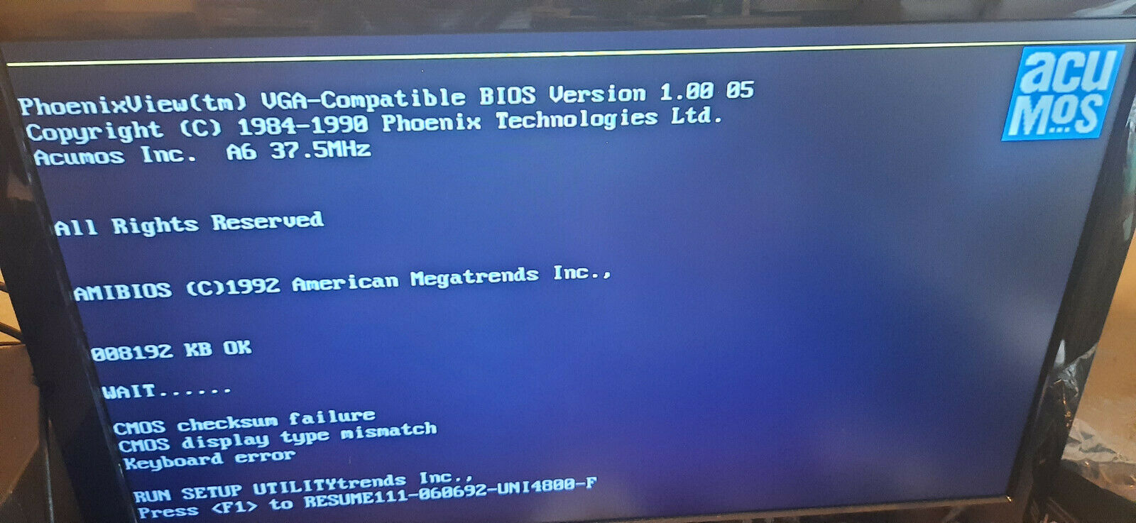 Si tratta di un sistema 486 a 40 Mhz, con cpu AMD Am486 DX-40; mobo datata Ottobre 1993, come da etichetta, equipaggiata con 8 slot per memoria simm a 30 pin per complessivi installati 8 Mega di ram (simm da 1 mega)