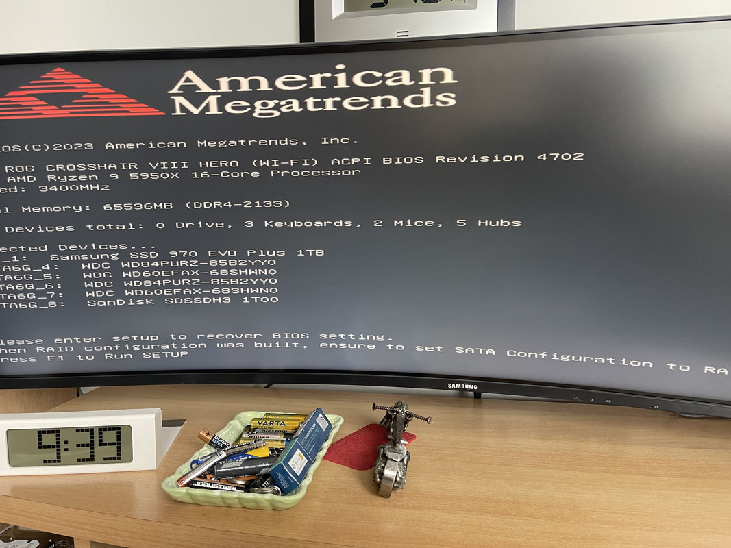 Buonasera a tutti, da qualche giorno ho un problema all'avvio del pc: pochi secondi dopo aver acceso il tutto appare la solita schermata dove mi si chiede di premere F1, entrare nel bios e verificare la creazione di una partizione raid (o qualcosa di simile).