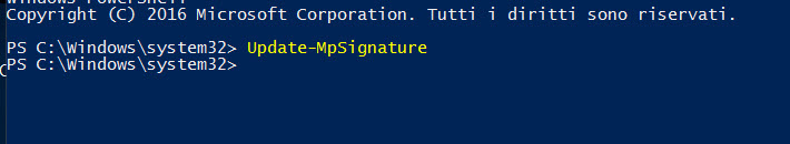 L'aggiornamento mediante Powershell sembra fallire. Non appare questa sequenza di %: ![]() ma invece é questa dopo pochi secondi: ![]() Con il comando Get-MpPreference: Codice: