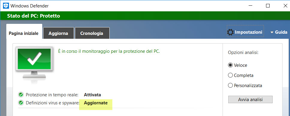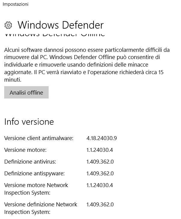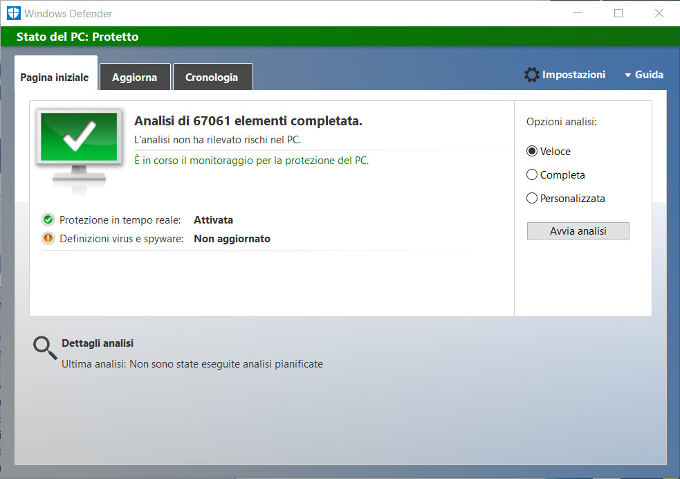 Ma sei sicuro sicuro che è una installazione di Windows 10 quella? Direi più probabile Windows 8, io Defender in 10 non lo ricordo mai così, neanche nove anni fa per dire. |
