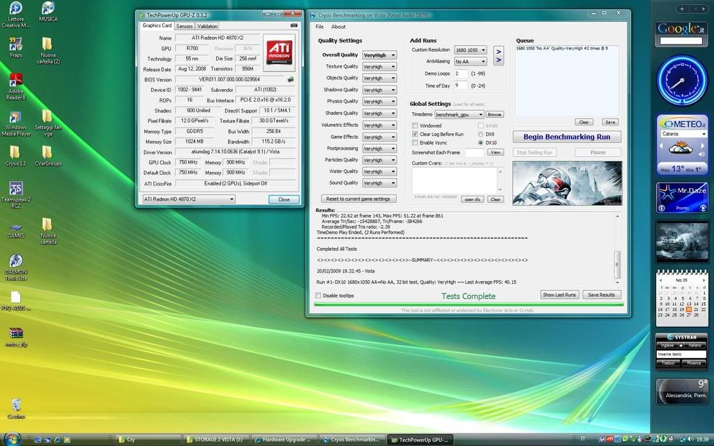 FarCry 2 1920x1200 AA4x tutto su ultra ![]() FarCry 2 1920x1200 NOAA tutto su ultra ![]() Crysis 1920x1200 dx9 high ![]() Crysis 1920x1200 dx10 very high ![]() in questi 2 giochi vanno come i 9.1 extreme...in farcry 2 ho perso circa 1fps e mezzo...facevo 67fps a 1920x1200 4XAA tutto su ultra.