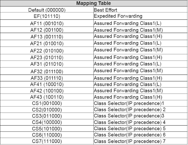 ho trovato questa tabella: ![]() In base a quale criterio hai scelto di dare come DSCP Marking: CS7 al range con maggiore priorità, CS3 al range con media priorità e CS1 al range con priorità bassa?