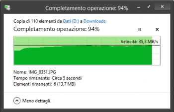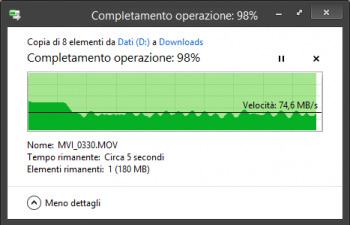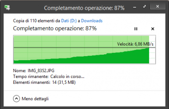 Netgear SNR@default / @-5db (max) Il Netgear se la cava meglio senza variazione di SNR, agganciando più portante ma anche tirandolo al massimo non riesce più ad agganciare i 7 mega sulla mia linea sempre più degradata. Il Billion @-8db invece mi aggancia 7 mega praticamente pieni. C'è da dire che quando la linea andava meglio di adesso col Netgear non ho mai visto più di 850 KB/s, anzi stava sempre sugli 840 KB/s circa mentre col Billion ieri mi ha scaricato Debian a 870 KB/s quasi costanti. Ping Billion / Ping Netgear Anche qui una sorpresa positiva. Il ping del Netgear è più alto di circa 5 ms, anche se negli speedtest questa differenza si assottiglia diventando di 3-4 ms. Poca roba ma come ho già detto mi aspettavo l'opposto essendo su DSLAM Huawei/Infineon. Avevo eseguito anche degli speedtest ma purtroppo non trovo più quello fatti col Netgear e non posso più effettuarli perchè oggi nel primo pomeriggio ho richiesto la 10 mega e quando sono arrivato a casa me l'avevano già attivata. Test LAN Billion: Test LAN Netgear: Ho la casa cablata col CAT6 e la tratte tra i vari pc sono di circa 25-30 metri. I test sono stati effettuati nelle stesse condizioni. Bene o male qui le prestazioni sono simili. Nel trasferimento delle immagini (260 MB) col Billion non ho nemmeno fatto in tempo a fare lo screenshot che aveva già terminato. L'ho rifatto e sembra che le abbia copiate molto lentamente (6 MB/s max) ma in realtà ci ha impiegato pochi secondi, come il Netgear. Il trasferimento da HDD ad HDD è un po' altalenante (2 WD Caviar Green), probabilmente dovuto alla saturazione del buffer. Da SSD ad SSD questo problema scompare, a parte in qualche rara occasione. Nel trasferire un file immagine di Mint da HDD ad HDD in un caso ha trasferito il file a 113 MB/s costanti, nel secondo caso la velocità era un po' altalenante. Bene o male le prestazioni su rete locale si eguagliano. Per quanto riguarda la wireless invece non c'è proprio storia. Non ho nemmeno eseguito dei test perchè mi è bastato vedere il cellulare che una volta collegato non si scollega più, a differenza del Netgear col quale si scollegava ogni 2x3. Devo fare un confronto con la 10 mega che purtroppo arriva solo a poco più di 8 mega. Speravo di vedere i 9 almeno. Prima avevo provato a collegare il Netgear giusto per vedere la differenza ed agganciava addirittura meno della 7 mega in download... Il ping però era più basso e la velocità in up migliore. ![]() Appena riesco posto degli screen anche della 10 mega.