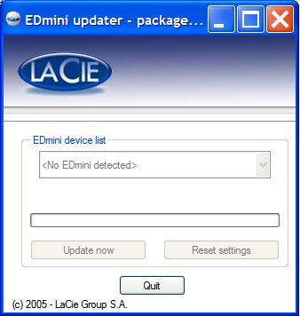 Per resettare gli "Ethernet Disk mini - 10/100" si usa l'EDmini Updater: il programma consente oltre all'update firmware anche il comando per il "Reset settings". Clicca sull'immagine per scaricarlo dal sito Lacie (~32MB). Quote: