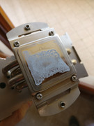 Dismesso il mio vecchio PC con i7 920 dopo 10 anni e rimuovendo il dissipatore trovo la situazione che vedete in foto. La parte mancante è rimasta sul processore. La tocco con un dito e sorprendentemente non è totalmente secca, difatti mi sporco il dito. Era una NT-H1 di Noctua, ora sostituita con la NT-H2.
