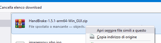 Come togliere la voce dal menu contestuale di un download "apri sempre file simili a questo" ?