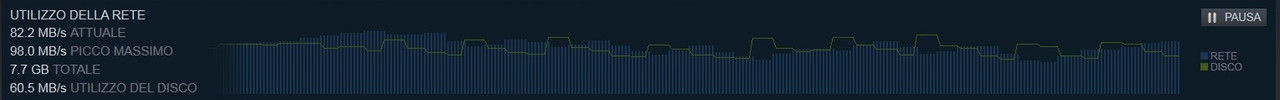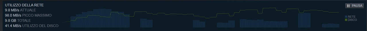 Il router lo avevo già resettato di fabbrica pochi giorni fa. Io penso che comunque c'entri anche Steam stesso. Non so come funziona e come viene gestito il download dai server Steam, ma a me è sempre variato anche da gioco a gioco che scarico. Adesso ho rifatto un paio di download senza nessuna modifica al pc. Qui ho messo in download un gioco pochi minuti fa: ![]() Velocità di download in linea con la mia fibra e molto più regolare. Qui invece ho messo in download un altro gioco (è lo stesso gioco dello screen che ho postato poco sopra un paio di giorni fa): ![]() Come in precedenza, altalenante e velocità non da fibra 1000