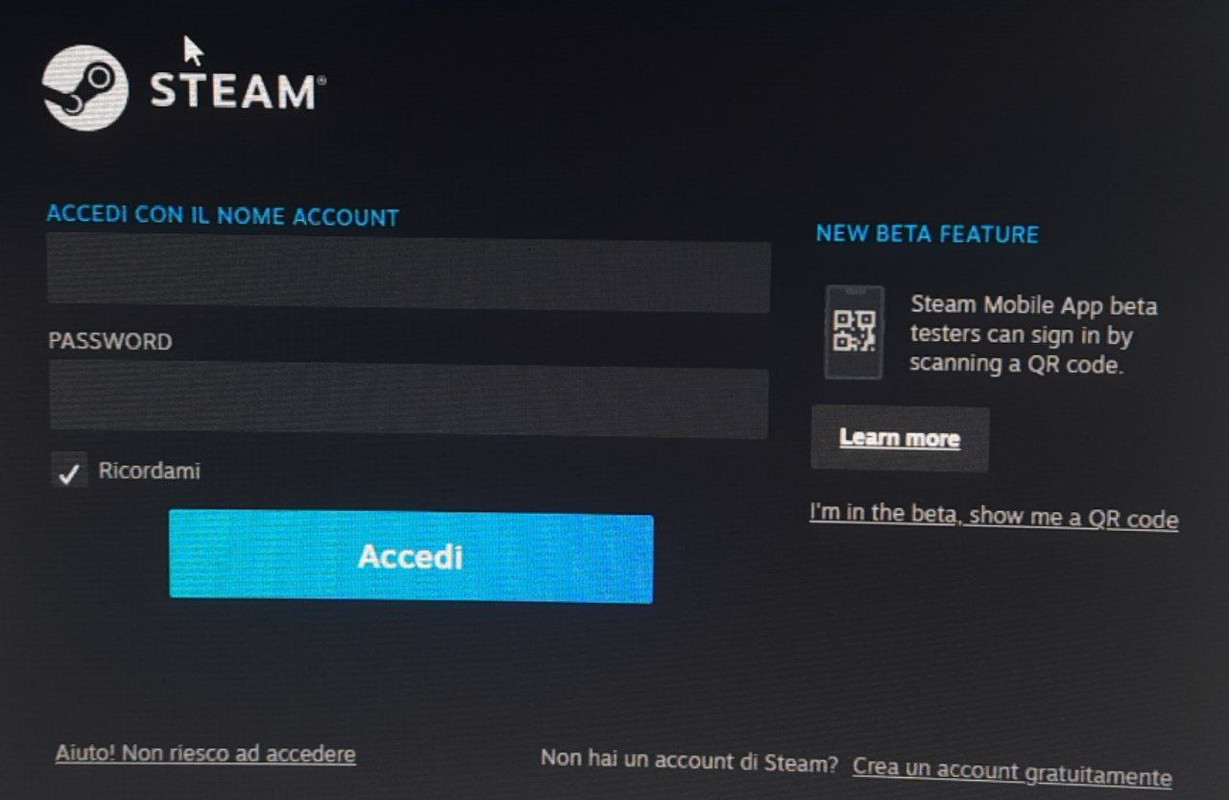 Ma anche a voi esce così ora la finestra di accesso di steam? A me è cambiata così e non mi accetta più il trucco del nome utente e password scritto nel collegamento