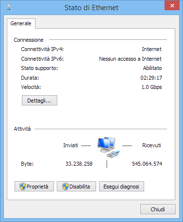 A voi le porte Ethernet del modem vi funzionano ad 1 gbps? Ho provato con due diversi PC ed un router, e tutti non riescono ad "allinearsi" ad 1gbps, ma al massimo 100mbps. Se siete direttamente collegati al modem, potete vederlo direttamente da Windows visualizzando le proprietà della connessione di rete (qui la velocità è 1gbps perché sono collegato ad un router gigabit).