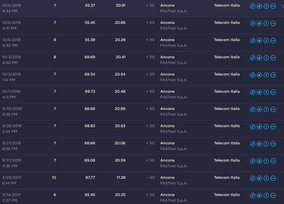 Scusate! Qualche buon anima.. ![]() Da fine marzo scorso e forse anche prima ho avuto un calo drastico della velocità. ![]() Da novembre 2016 quando ho stipulato il contratto per la smart fibra TIM ![]() ![]() ![]() ![]() Faccio presente che l'armadio vicino casa adesso risulta saturo..sarà questo il motivo?Diafonia? Grazie per eventuali risposte.. ![]() Saluti! |