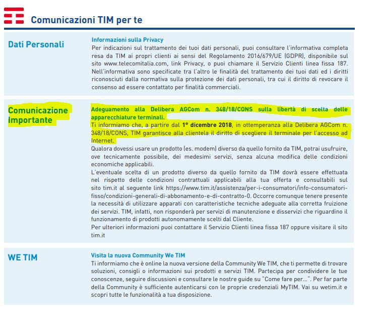 Il mio punto di vista sulla comunicazione modem libero Tim.