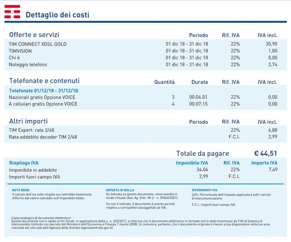 Guardando questa fattura mi sono reso conto di una piccola...ma "grandissima" cosa e per questo ringrazio l'utente... Ma il servizio "chi è" è incluso nella Tim Connect 2019?? Io l'ho sempre avuto....dalla adsl flat....alla tuttofibra....alla smart....ed ora la connect??? Come funziona?? Grazie mille a tutti in anticipo..... ![]() ![]() ![]() ![]() |